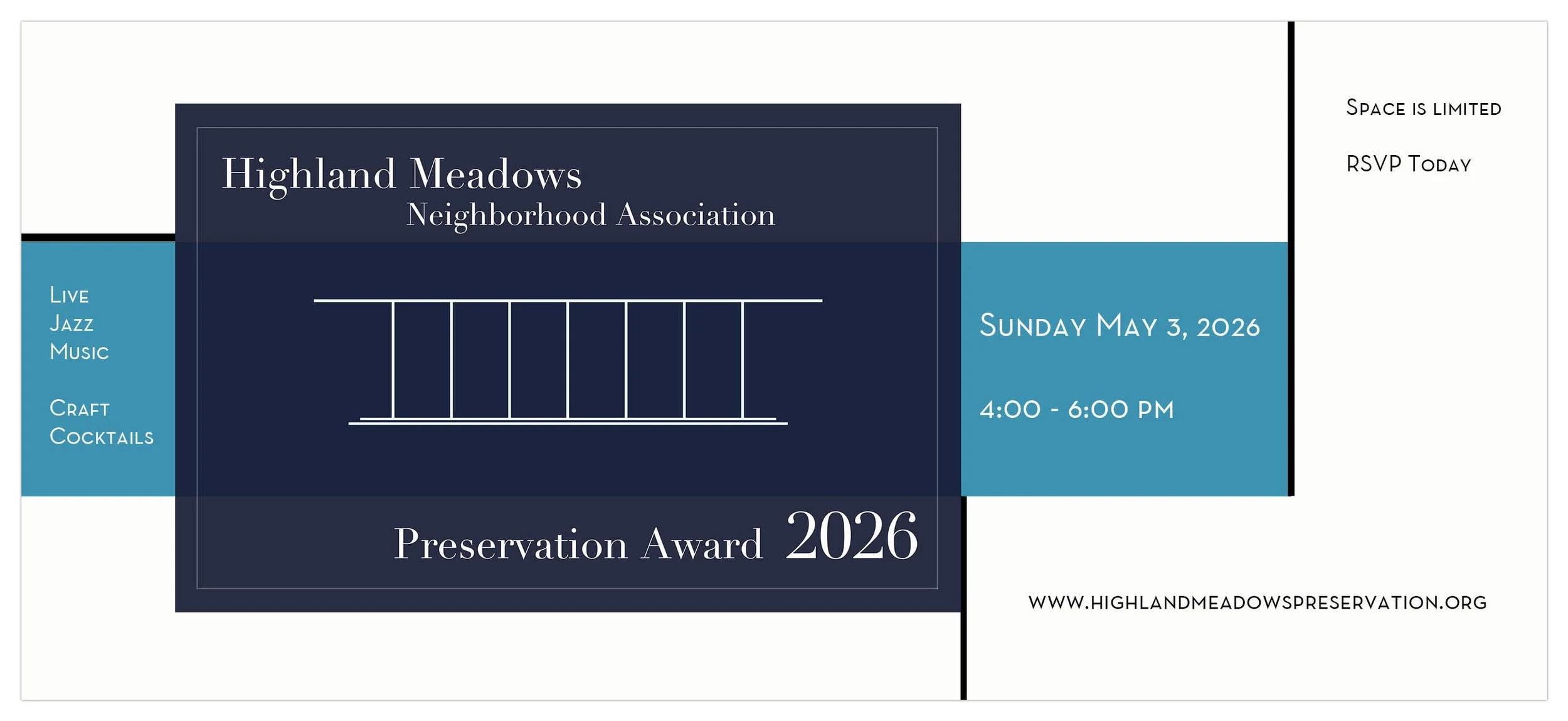 Celebrate National Preservation Month, join neighbors and architecture enthusiasts for our annual Preservation Award. Enjoy craft cocktails, hors-d’oeuvres, and live jazz music by Julian Sutherland.