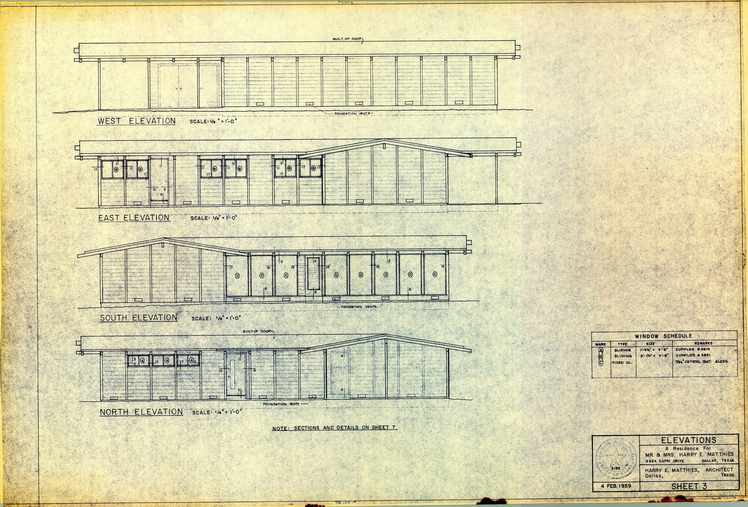 Elevations, Matthies Home, 1959, courtesy of Harry E. Matthies Archive - Highland Meadows Preservation Foundation